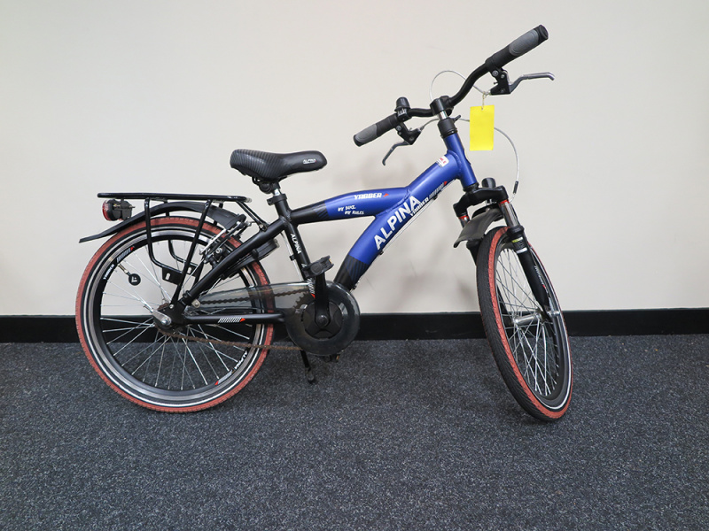 Silver zwartrode Alpina Yabber, jongenfiets. Zijwieltjes erbij